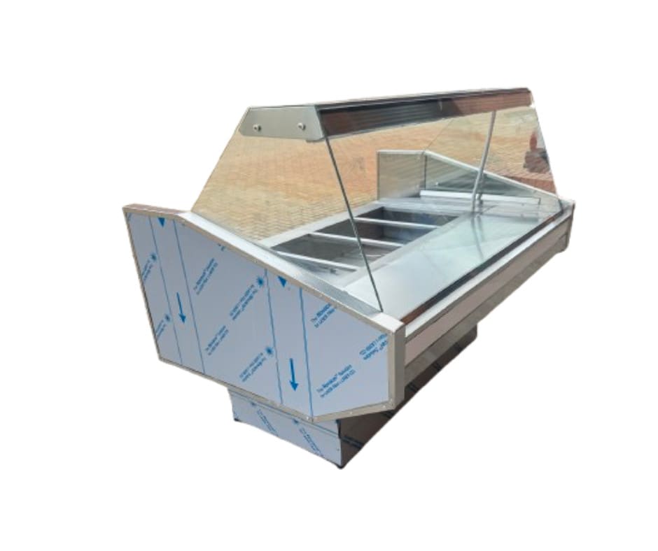 4 Divison Bain Marie Warmer – CURVE Glass (1.8M)Floor Standing, On Sale